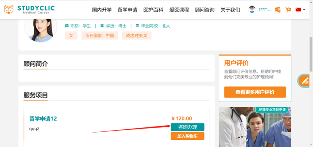 8. 返回上级,点击右侧顾问咨询,咨询该项目